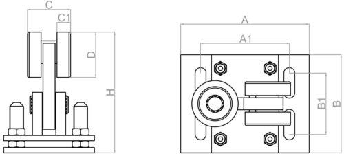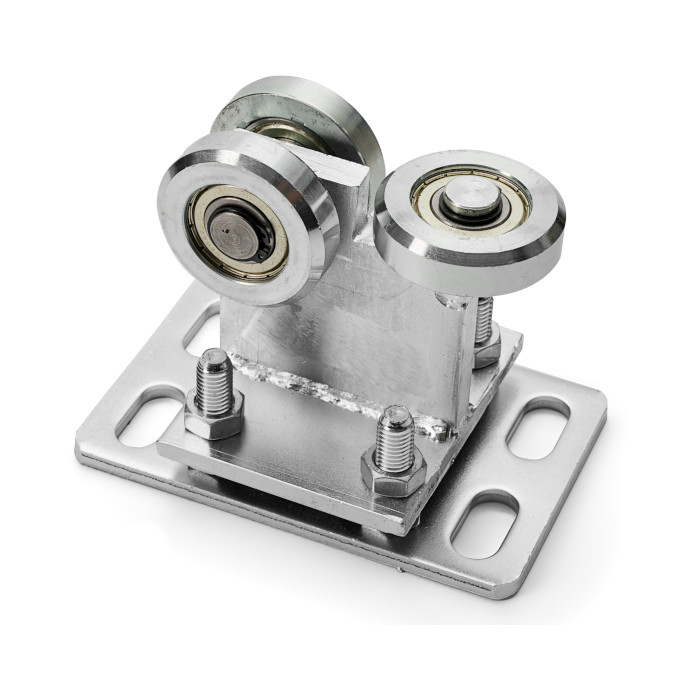Wózek jezdny 3 rolkowy do profilu 80x80x5 mm. Wózek posiada regulację w pionie oraz poziomie.